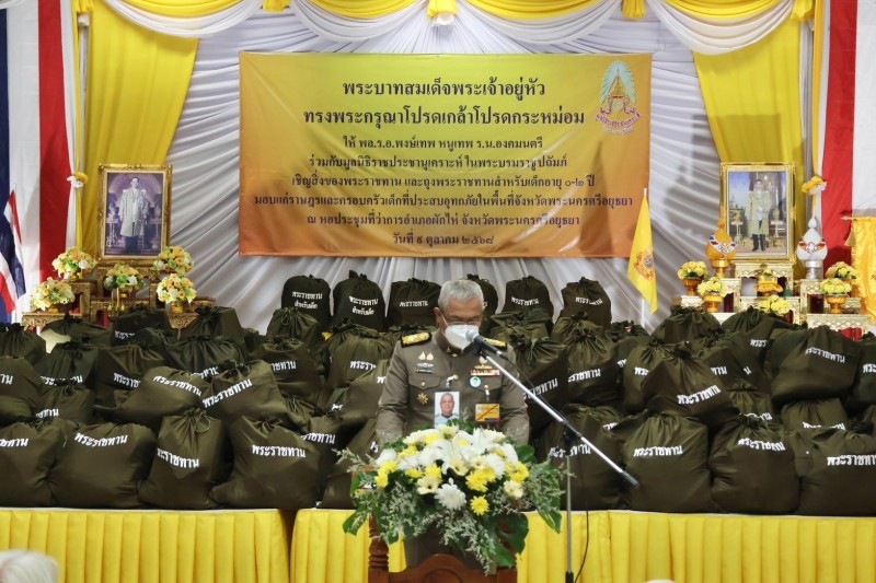 พระบาทสมเด็จพระเจ้าอยู่หัว ทรงพระกรุณาโปรดเกล้าโปรดกระหม่อมให้ พลเรือเอก พงษ์เทพ หนูเทพ องคมนตรี ประธานกรรมการบริหารมูลนิธิราชประชานุเคราะห์ ในพระบรมราชูปถัมภ์ เชิญสิ่งของพระราชทานและถุงพระราชทานสำหรับเด็กแรกเกิดถึง ๒ ปี มอบแก่ราษฎรและครอบครัวเด็กที่ประสบอุทกภัยในพื้นที่จังหวัดพระนครศรีอยุธยา