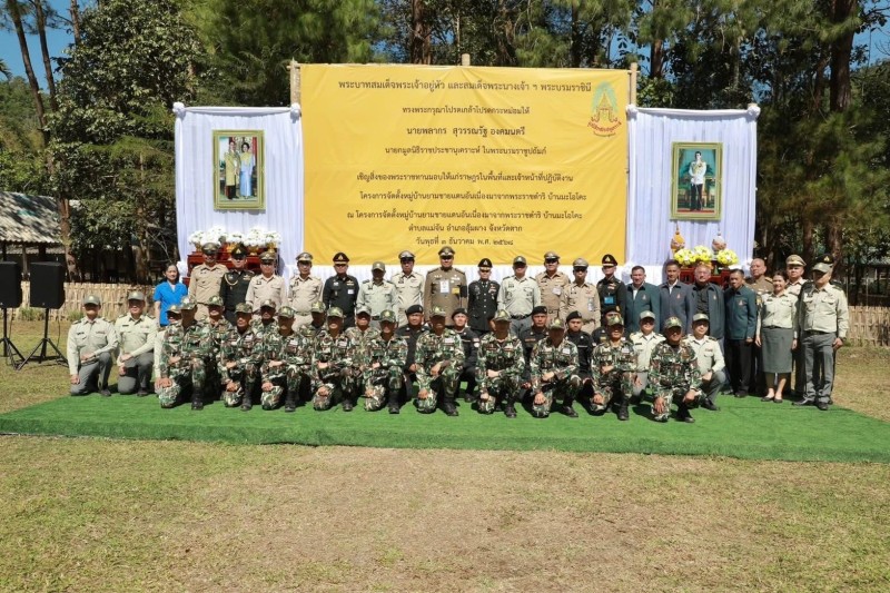 นายพลากร สุวรรณรัฐ องคมนตรี นายกมูลนิธิราชประชานุเคราะห์ฯ ประธานอนุกรรมการติดตามและขับเคลื่อนโครงการอันเนื่องมาจากพระราชดำริในพื้นที่ภาคเหนือ พร้อมด้วย นายศุภรัชต์ อินทราวุธ รองเลขาธิการ กปร. เจ้าหน้าที่มูลนิธิราชประชานุเคราะห์ ในพระบรมราชูปถัมภ์ และคณะอนุกรรมการฯ เดินทางไปยังฐานปฏิบัติการบ้านบ่อแร่ หมวดปืนเล็กที่ ๒ กองร้อยทหารราบที่ ๑๔๒๒ ตำบลแม่จัน อำเภออุ้มผาง จังหวัดตาก เพื่อเชิญถุงพระราชทานจากพระบาทสมเด็จพระเจ้าอยู่หัว และสมเด็จพระนางเจ้า ฯ พระบรมราชินี ไปมอบแก่ผู้ปฏิบัติงานหน่วยความมั่นคง จำนวน ๑๙ ชุด