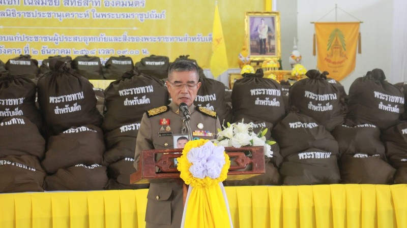 พระบาทสมเด็จพระเจ้าอยู่หัว ทรงพระกรุณาโปรดเกล้าโปรดกระหม่อมให้ พลเอก เฉลิมชัย สิทธิสาท องคมนตรี ร่วมกับมูลนิธิราชประชานุเคราะห์ ในพระบรมราชูปถัมภ์ เชิญสิ่งของพระราชทานไปมอบแก่ราษฎรที่ประสบอุทกภัย ในพื้นที่จังหวัดปัตตานี