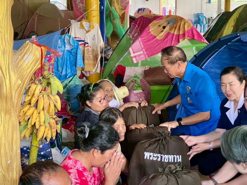 นายวิลาศ รุจิวัฒนพงศ์ รองประธานฝ่ายบรรเทาทุกข์ และคณะเจ้าหน้าที่มูลนิธิราชประชานุเคราะห์ฯ มอบถุงพระราชทานเครื่องอุปโภคที่จำเป็น ถุงพระราชทานสำหรับเด็ก และเต็นท์นอน แก่ผู้ที่ได้รับผลกระทบจากเหตุการณ์คว ...