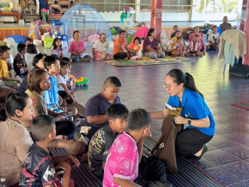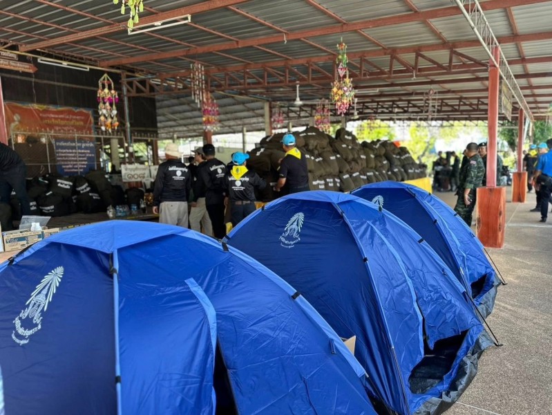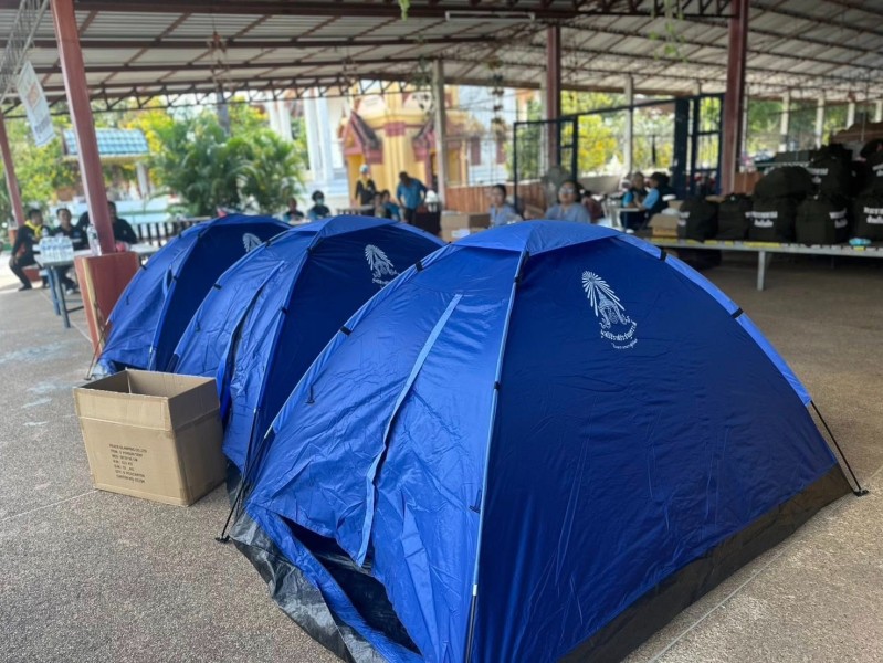 ถุงพระราชทานสำหรับเด็ก จำนวน ๒๐๐ ชุด และเต็นท์นอน จำนวน ๑๐๐ หลัง
