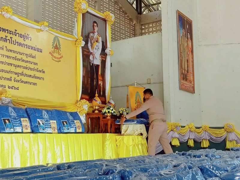 โดยมีนายอำเภอทั้ง ๔ อำเภอ เป็นผู้แทน เพื่อนำไปมอบให้แก่ราษฎรที่อาศัยอยู่ในถิ่นทุรกันดาร ผู้สูงอายุ คนพิการ และผู้ที่มีรายได้น้อย พร้อมด้วยคณะกรรมการมูลนิธิราชประชานุเคราะห์ ประจำจังหวัดนครนายก และหน่วยงานราชการที่เกี่ยวข้อง เข้าร่วมพิธี