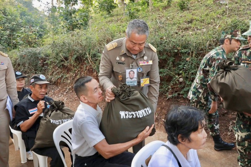 จากนั้น องคมนตรีและคณะ เดินทางไปยังบ้านป่าครั่ง ตำบลแม่เจดีย์ใหม่ เพื่อเชิญถุงพระราชทานมอบให้แก่ราษฎรในพื้นที่ สร้างความปลื้มปีติให้แก่ราษฎรในพระมหากรุณาธิคุณที่ทรงห่วงใยพสกนิกรเสมอมา