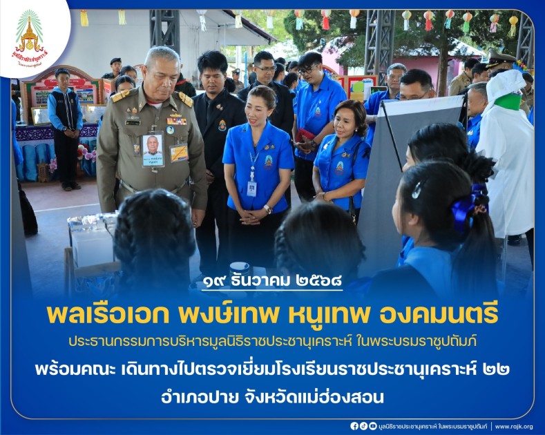 พลเรือเอก พงษ์เทพ หนูเทพ องคมนตรี ประธานกรรมการบริหารมูลนิธิราชประชานุเคราะห์ ในพระบรมราชูปถัมภ์ พร้อมคณะ เดินทางไปตรวจเยี่ยมโรงเรียนราชประชานุเคราะห์ ๒๒ อำเภอปาย จังหวัดแม่ฮ่องสอน