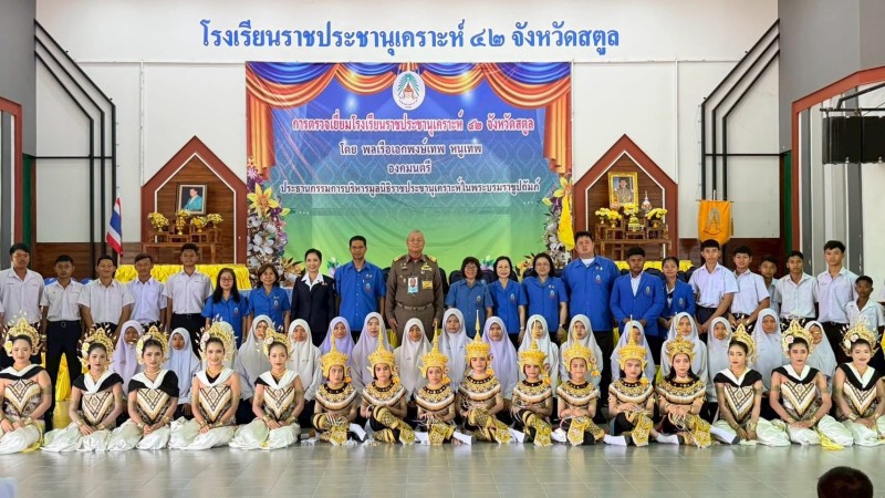 โดยมี นายคณิต คงช่วย ผู้ว่าราชการจังหวัดสตูล นางสุพรรณา แก้วเพิ่มพูน ผู้อำนวยการโรงเรียนราชประชานุเคราะห์ ๔๒ คณะครู นักเรียน และหัวหน้าส่วนราชการ ให้การต้อนรับ