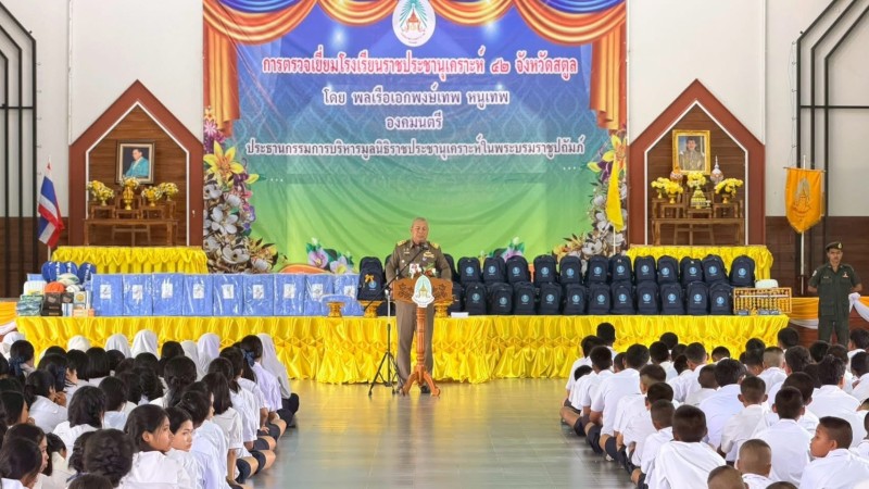 พลเรือเอก พงษ์เทพ หนูเทพ องคมนตรี ประธานกรรมการบริหารมูลนิธิราชประชานุเคราะห์ ในพระบรมราชูปถัมภ์ พร้อมคณะ เดินทางไปตรวจเยี่ยมโรงเรียนราชประชานุเคราะห์ ๔๒ อำเภอเมืองสตูล จังหวัดสตูล