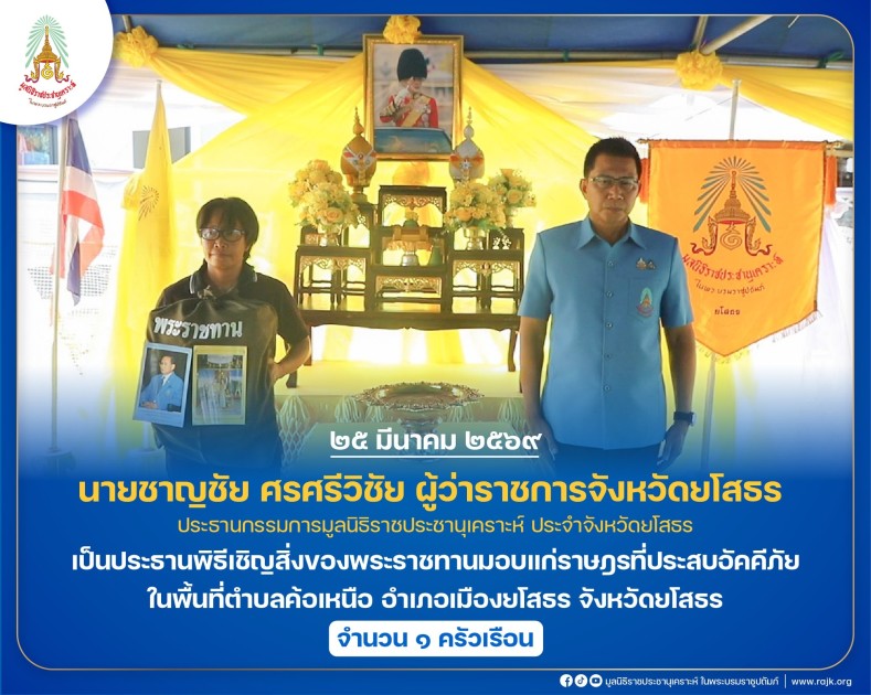 นายชาญชัย ศรศรีวิชัย ผู้ว่าราชการจังหวัดยโสธร ประธานกรรมการมูลนิธิราชประชานุเคราะห์ ประจำจังหวัดยโสธร